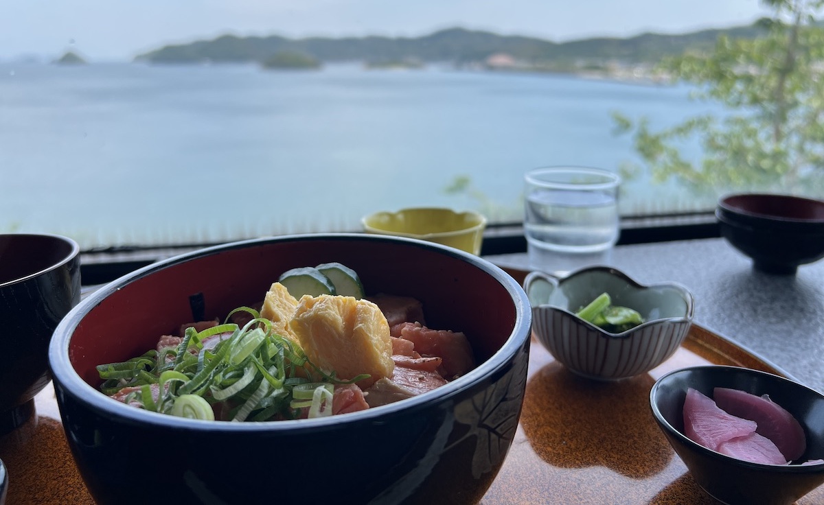 高台から海を見下ろしいただくランチは、視覚的にも最高。遠く「道の駅サザンセトとうわ」や「真宮島」を眺めることができます。今回はランチをいただきましたが、海を見下ろしながらカフェタイムにお邪魔したい絶景でした。また、ペットも一緒に食事をできる貸切スペースもあるのが特徴的です。