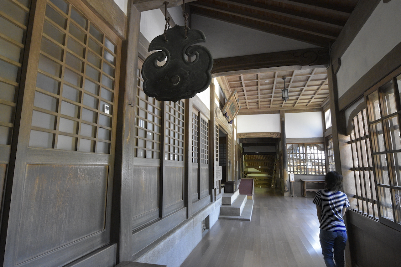 まず驚かされたのが「傘松閣」。大広間の天井が格子状に区切られ、天井には全部で230枚の絵がはめこまれています。別名「天井絵の大広間」と呼ばれ、その素晴らしさと奥行き感に圧倒されます。廊下を時計回りに進むと修行僧が坐禅・食事・就寝する「僧堂」、仏教を講義する「法堂」、仏像を安置し礼拝する「仏殿」と続き、そのさきに「庫院」があります。「庫院」は「禅宗寺院内の厨房」。修行僧や参籠者の三度の食事を作る台所「典座寮」があり、廊下には食事の刻を知らせる鐘が吊るされています。